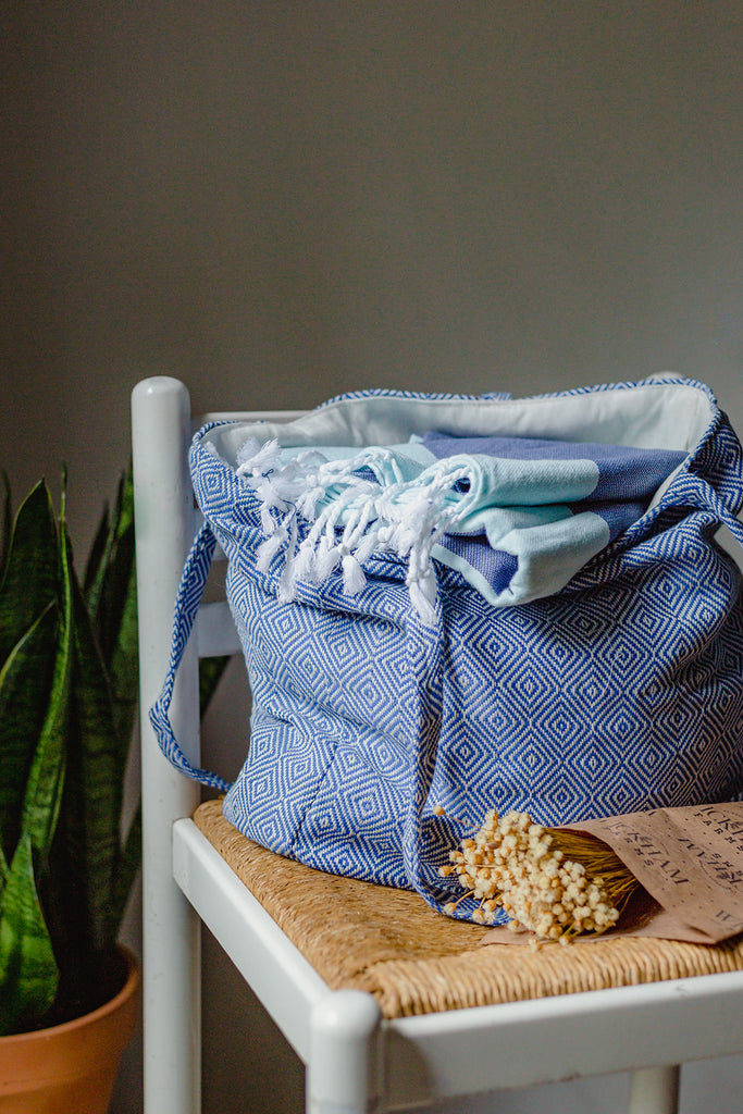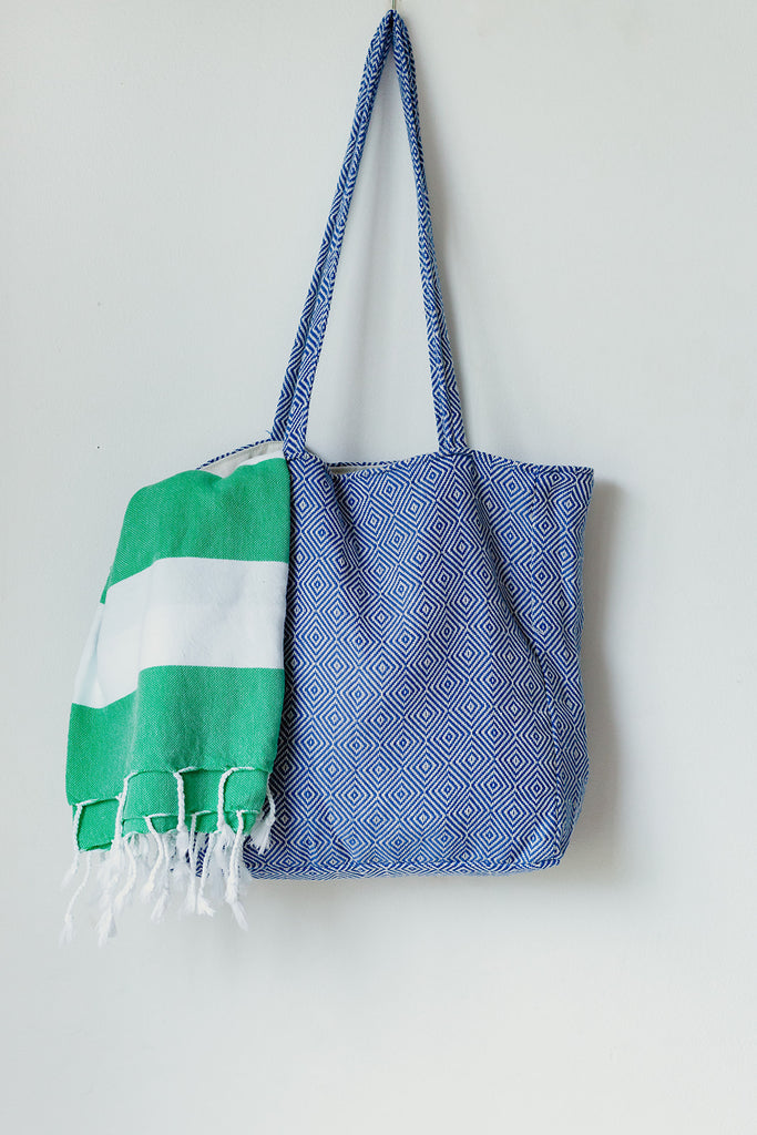 Featuring Turkish cotton in a large diamong pattern, Poolside at Home Tote Collection is the perfect slouchy and spacious bag to carry towels, groceries, and all your travel essentials.