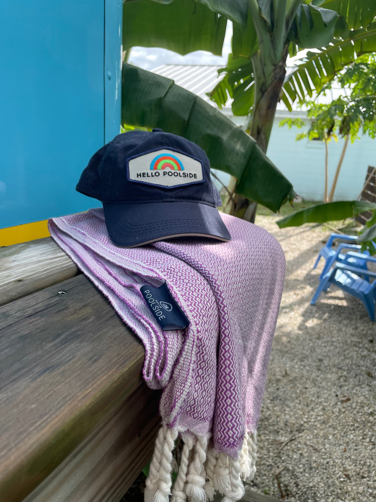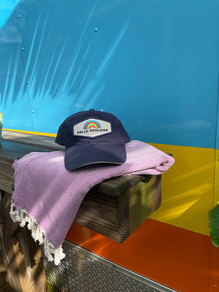 Fun and functional, the Hello Poolside baseball cap is the perfect holiday gift this year! A relaxed fit, but with more structure then a trucker hat, it's perfect for your day spent outdoors. The fun rainbow patch adds a pop of color, and the durable material will ensure this is your favorite cap for years to come.
