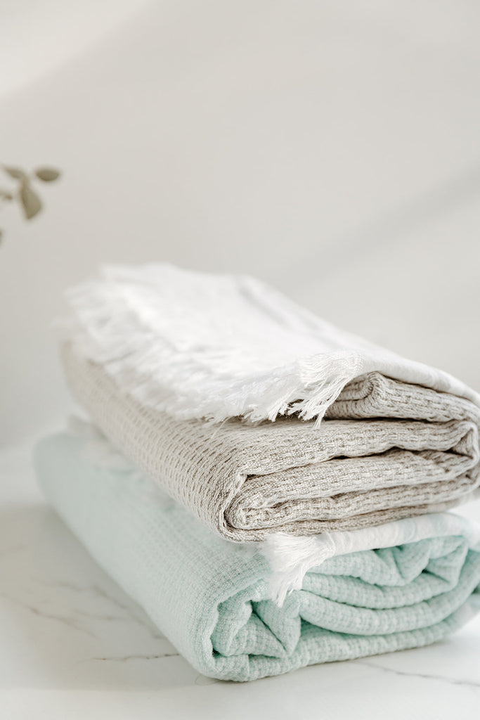Featuring Turkish cotton in a waffle weave, paired with a border of stripes, the Poolside at Home Collection can bring a spa-like feel to your daily routine. Makes a great bath or spa towel.
